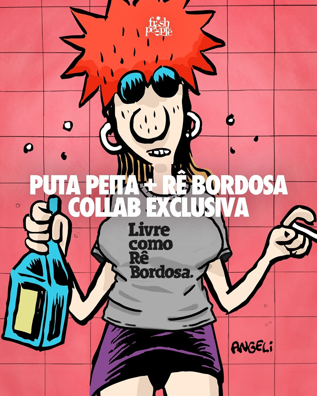 Essa é uma collab exclusiva entre a PEITA e a Galeria Angeli e marca essas 4 décadas provocativas de Rê Bordosa. Uma parceria idealizada pela FRESH PEOPLE 🔥🖤